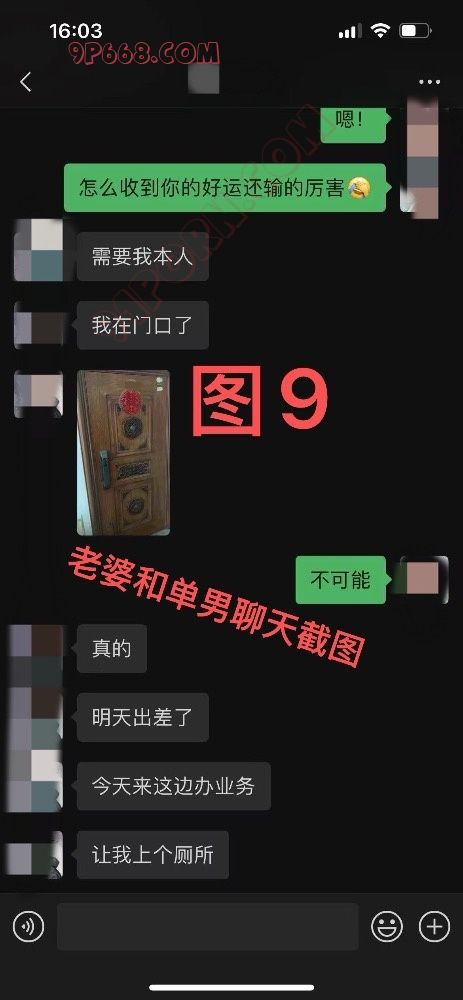 那天,单男发来信息给我说想过来问我方不方便,我告诉他没问题,叫他直接到小区里。碰面后,我交代了一些和老婆聊天和日常的内容以避免穿帮,让他登录上我的微信小号。然后让他直接上楼发消息告诉老婆过来看她了并且已经到门口了。因为我深知老婆的性格,虽然嘴上一直不同意,但是经过这半个月的热聊,最重要的是单男在这段时间在她身上花费了大量的金钱(不低于3000),让老婆有了一种吃人嘴软拿人手短的思想包袱,所以我断定,让单男直接上门老婆不会拒绝!单男到了小区给老婆发消息后,老婆马上发消息给我说那个人果然去找她了,问我怎么办?(见图7、8、9)